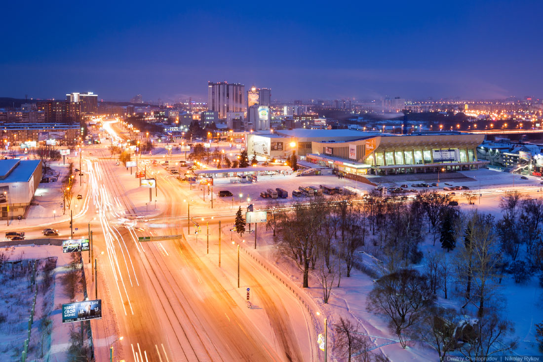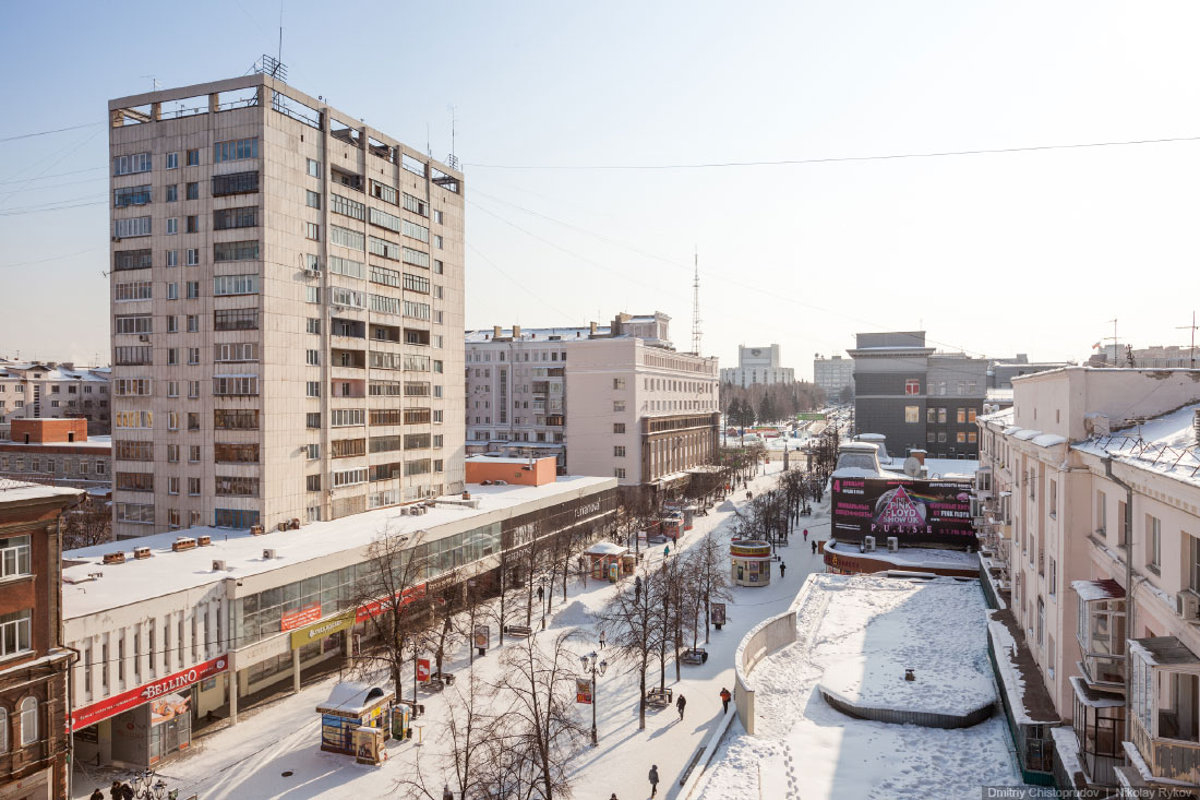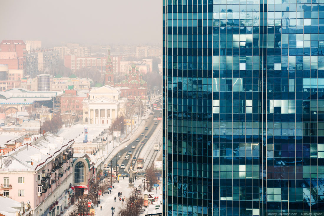1. Вид на Театральную площадь и площадь Революции с театра драмы имени Орлова. Все по симметрии, как я люблю. В Челябинске мы провели четыре ночи. В каждый «режим» мы забирались на разные крыши и снимали город.