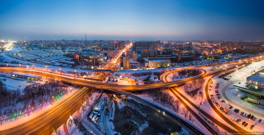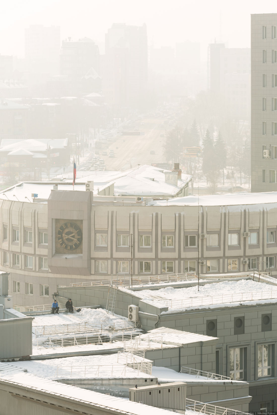 Первое впечатление — город как город, обычный областной центр, только снег слишком белый. На улице было не холодно, около 5 градусов мороза. На пороге гостиницы в одном свитере нас встречал сибирский друг и коллега Слава Степанов gelio. Слава хотел нас поприветствовать, да сразу пойти спать — на следующий день он собирался снимать рассвет с какой-то высотки. В итоге мы выпили по чаю, протрещали пару часов и утром пошли встречать рассвет вместе.