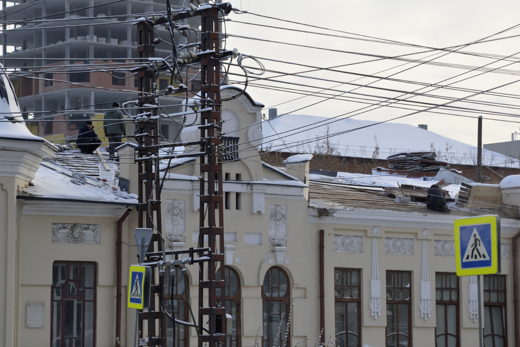 13. Идя по ул. Труда обратил внимание - на особняке Данцигера меняют крышу.