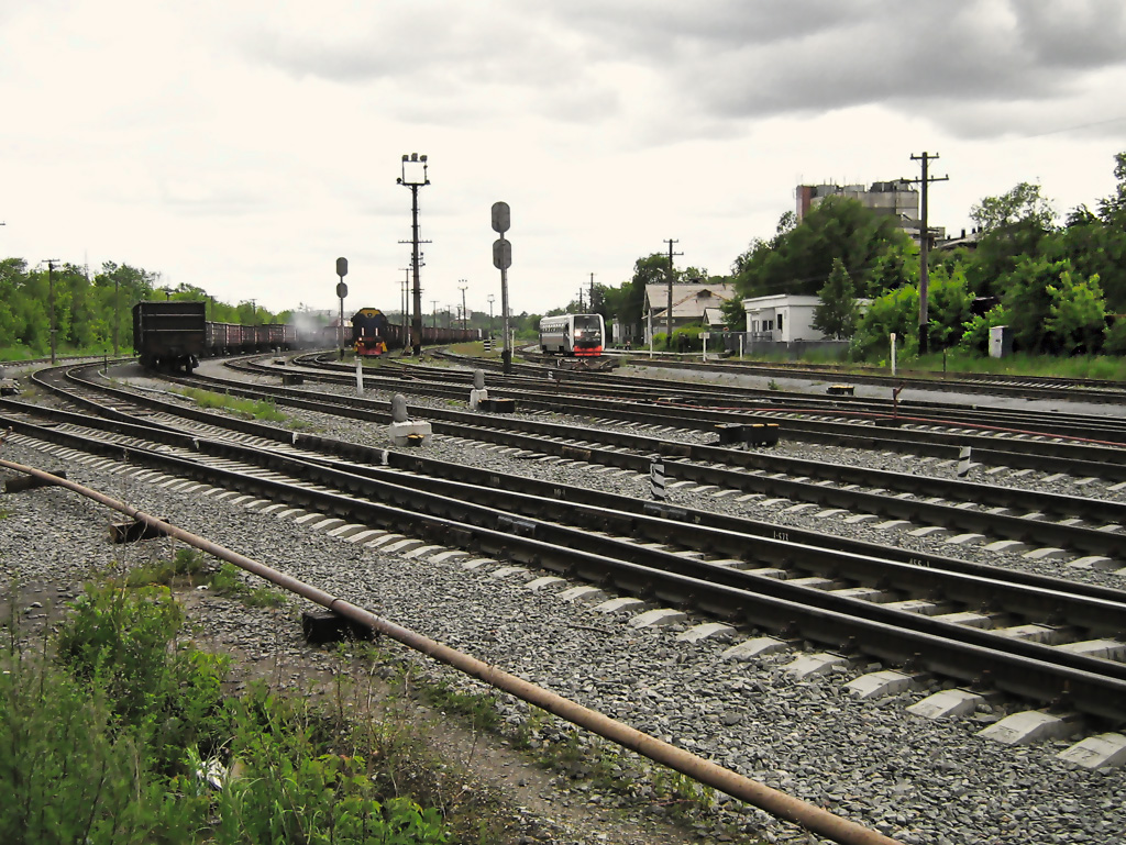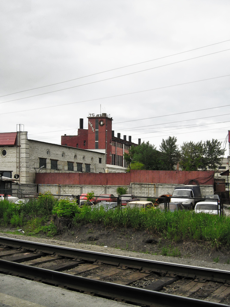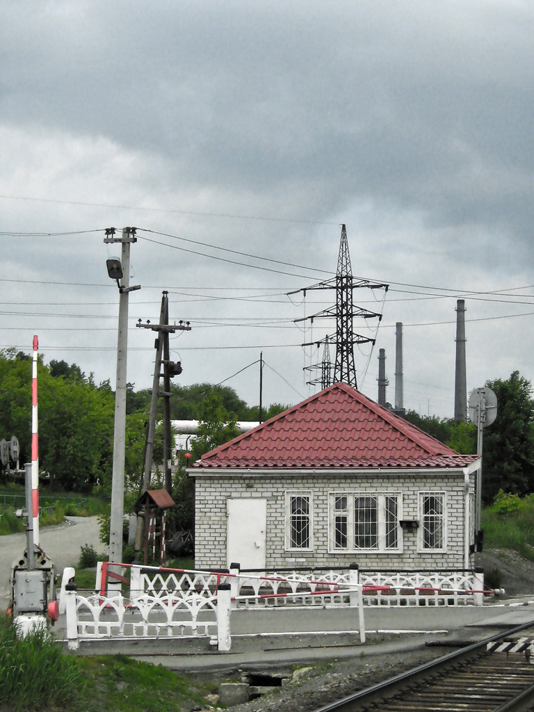Ветка слева уходит на ЧГРЭС и там остается. Ветка прямо идет по всей территории ЧЭМК. И вот по ней со стороны ворот к нам резво двигался какой-то деятель в форме охраны. Завидев такой атас, мы перепрыгнули через пути и скрылись на территории гаражей.
