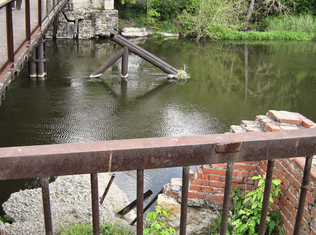 В сторону Российской идет еще один мост, не настолько убитый, но все жедоставляющий представляющий геопроктологический интерес. На обзорной площадке мы перекурили и полюбовались живописными руинами.