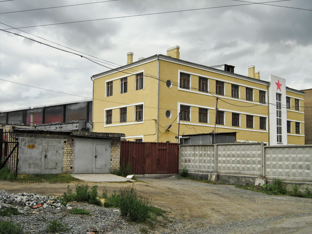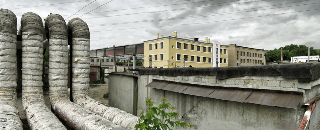 Немного прошлись огородами вдоль электромиталлургического забора. Вот некое здание тридцатых годов коньструктивистского стиля. Удивляет своим цывильным видом на фоне ржавых цехов. Даже звездочку подкрасили, малацы. А рамы еще аутентичные.