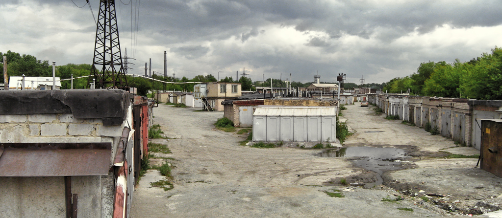 Все же Андрюха не удержался и залез повыше, откуда и принялся снимать очередями наотмашь. Ибо целиться, балансируя руками на высоте трех метров, просто некогда. Потом я из серий запилил немного порнорам. Вот что видно поверх гаражей.