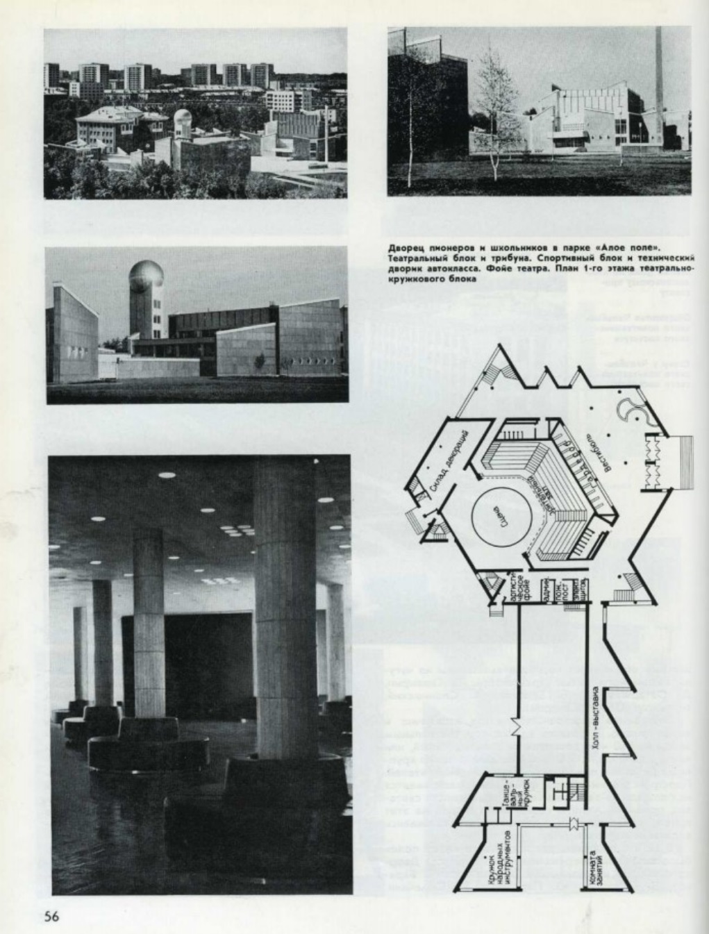 В 1978 г. в глубине детского парка «Алое поле» было закончено сооружение новых корпусов Дворца пионеров и школьников (архитекторы Б. Баранов, В. Глазырин, Ю. Перчаткин, Н. Семейкин, А. Слонимский, инженеры Л. Балдина, Н. Сверщевский), которые фланкируют аванплощадь перед существующим пятиэтажным зданием. В одном корпусе - спортивный зал на 300 зрителей и обсерватория, в другом - пионерский театр на 500 чел. Символична форма новостроек: их изрезанные планы и декоративная облицовка белыми и серебристыми терракотовыми армоцементными плитами создают образ склонённых знамён. Эта символика - своеобразный мемориал историческим событиям: на «Алом поле» в 1905 г. были расстреляны рабочие. Новые корпуса и старое здание объединяются в целостный выразительный ансамбль.