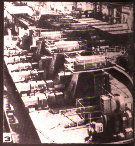 Стоящие перед трестом задачи большого народнохозяйственного значения коллектив успешно решает благодаря постоянному ускорению технического прогресса в строительстве, совершенствованию его организации, применению современных методов планирования и управления. Это видно на примере сооружения крупнейших металлургических объектов, построенных за последние годы. Ведущее место среди них занимает целый ряд комплексов, входящих в состав прокатного цеха № 3 челябинского металлургического завода (рис. 1). Среди них блюминг-автомат «1300» (рис. 2), построенный быстрее нормативных сроков — за 15 мес.; непрерывно-заготовочный стан, введенный в эксплуатацию за 11 мес. вместо 17 мес, по нормам, который обеспечил челябинские прокатные станы заготовками собственного производства; мелкосортный стан «250» (рис. 3), выпускающий горячекатанную арматуру периодического профиля и другие виды проката. При строительстве этих комплексов широко применялись метод законченного нулевого цикла, безвыверочный монтаж стальных конструкций, сборные и сборномонолитные конструкции подземного хозяйства, объемные элементы внутрицеховых помещений, крупноузловой монтаж технологического оборудования. На строительстве блюминга «1300» впервые в стране применена система СПУ и тем самым положено начало широкому внедрению в тресте АСУ на строительстве всех крупных комплексов.