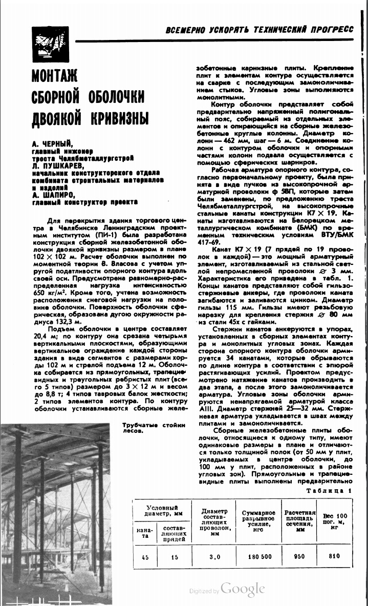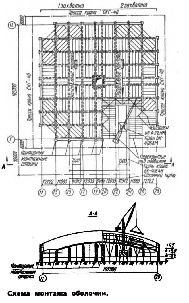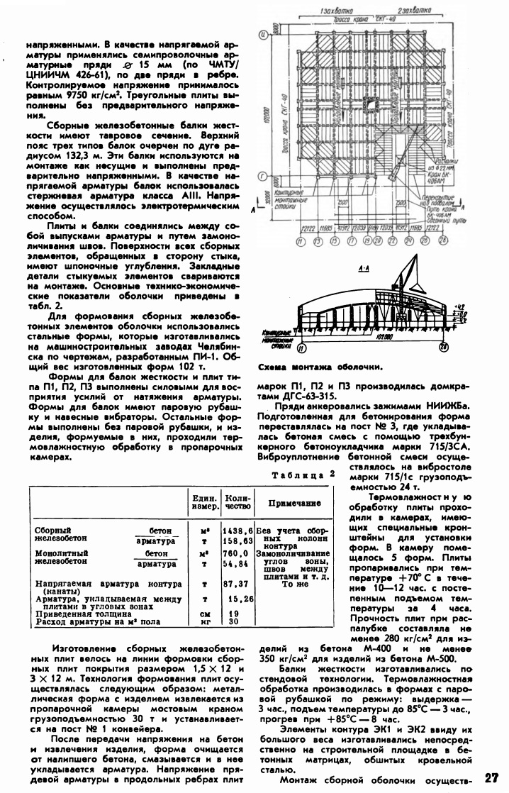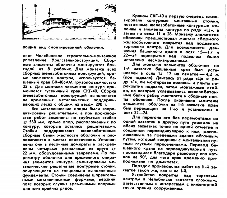 В качестве дополнения к торговому центру - изображения монтажа сборной оболочки двоякой кривизны (журнал "На стройках России" № 8, 1970).