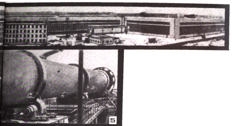 В минувшей пятилетке Челябметаллургстрой ввел в эксплуатацию на металлургическом заводе и комплекс кислородно-конверторного цеха, создав тем самым новое для предприятия производство конверторной стали общей мощностью 2200 тыс. т в год. В этот комплекс, помимо собственно конверторного цеха с 3 конверторами (рис. 4), входит целый ряд других объектов, в том числе отделение шлакопереработки, доломито-обжиговое отделение с вращающейся печью (рис. 5). Ввод отделения шлакопереработки позволил эффективно использовать отходы металлургического производства для нужд строителей. Его продукция: гранулированные шлаки — сырье для выпуска цемента: шлаковая пемза, применяемая в качестве легкого наполнителя для несущих и ограждающих конструкций зданий; доменный щебень — превосходный материал для производства бетонов, в том числе огнеупорных, жаропрочных. В отделении шлакопереработки намечено построить также цех минераловатных плит — эффективного утеплителя для покрытий и комплексных панелей ограждающих конструкций.